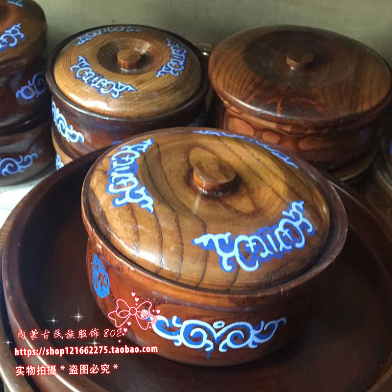 Монголия Этнический характеристика посуда ручная роспись деревянный Жареная миска с рисовой миской внутренней монголии характеристика облака картина дерево Еда посуда