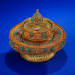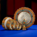 Непал ручной работы Манса Пан комплект медь позолота Серебряные обряды Мансанман чайный поднос Манчара 10.5