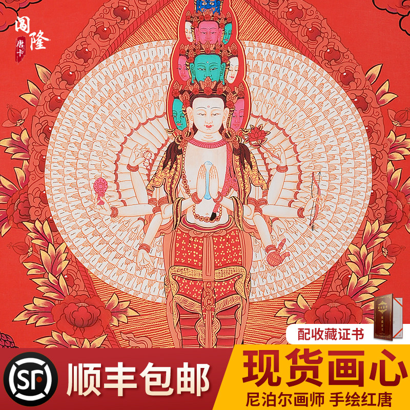 Ручная роспись Тхангка многорукая гуаньинь будда тибет картины Непал природный минеральная пигмент Будда декоративный рисование