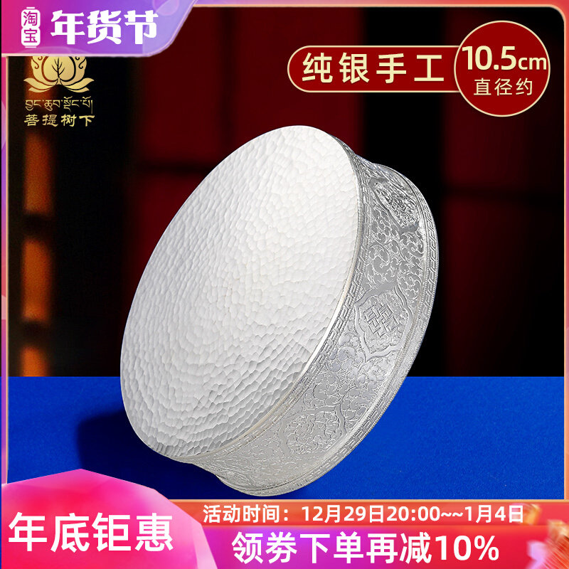 Серебро 925 пробы Манса Пан S990 серебро 925 пробы Ремонт 7 Будманчао восемь благоприятный Базовая плита ручной работы полотняного переплетения Пингхуа 10 см