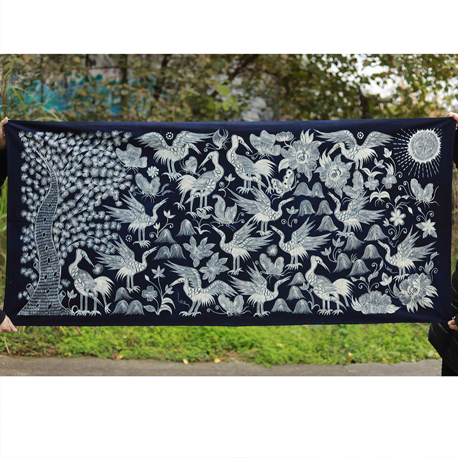 Shuijiafang Miao Этническая восковая краска синий краситель гуйчжоу немного народ декоративный рисование скатерть искусство китай классическая Карта крана